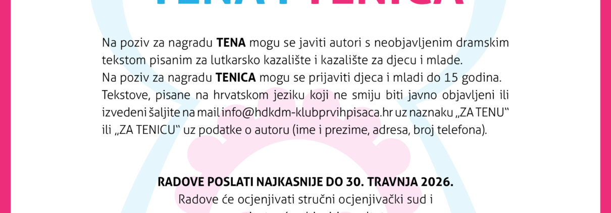 Kazališna družina Asser Savus i Hrvatsko društvo književnika za djecu i mlade udružili su snage kako bi stvorili dodatni prostor hrvatskim piscima da se iskažu u pisanju djela namijenjenih scenskom izvođenju. Naime, svjedoci smo da se u kazalištu mahom postavljaju prilagođene klasične bajke ili adaptacije popularnih književnih djela na uštrb komada pisanih baš za kazalište. Kako su lutke glavni junaci vinkovačkog Lutkarskog proljeća, Asser Savus i Hrvatsko društvo književnika za djecu i mlade, već nekoliko godina redovit gost na toj priredbi, odlučili su učvrstiti uspješnu suradnju i zajedno potražiti predloške za najbolje lutkarske predstave i ta je potraga urodila ovogodišnjim prvim natječajem Tena i Tenica za najbolji tekst za lutkarsku predstavu. Očito su veliki i mali spisatelji jedva dočekali prigodu da demonstriraju svoje umijeće jer je na prvi ovogodišnji natječaj prispjelo četrdesetak rukopisa. Prosudbena komisija – čiji su članovi spisateljica, nakladnica i predsjednica Hrvatskog društva književnika za djecu i mlade Silvija Šesto, spisateljica Julijana Adamović, spisateljica i urednica izdanja Hrvatskog društva književnika za djecu i mlade Snježana Babić Višnjić, glumac Nenad Pavlović, te Himzo Nuhanović,profesor, redatelj, dramaturg i producent – nakon pažljiva je iščitavanja izdvojila svoje favorite i jednoglasno odlučila da je pobjednik prvog natječaja Tena „Tečaj filozofije za Blesivjetra i Naopakoga“ autora pod šifrom Mišomarko. Tekst na originalan, a djeci razumljiv način progovara o „ljubavi prema mudrosti“ i istinskim životnim vrijednostima (Kad činiš nešto loše, nećeš biti sretan), preispituje uzroke nekih danas raširenih, a nepoželjnih pojava, poput ruganja, te afirmira ljudske vrline kojima će se takve pojave prevladati.