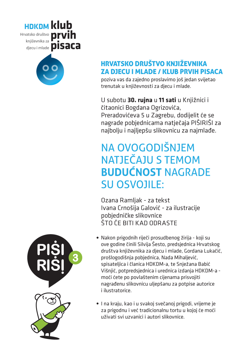 Hrvatsko društvo književnika za djecu i mlade / Klub prvih pisaca poziva vas da zajedno proslavimo još jedan svijetao trenutak u književnosti za djecu i mlade.