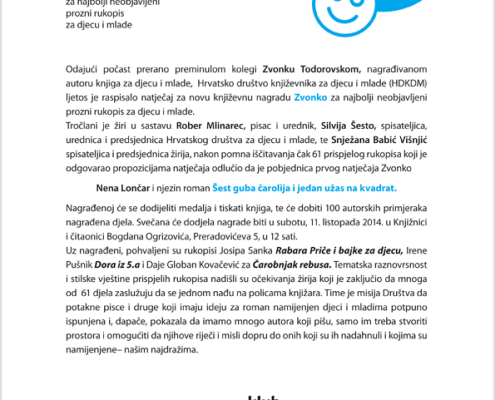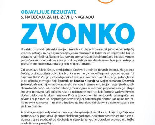 REZULTATI 5. NATJEČAJA ZA KNJIŽEVNU NAGRADU «ZVONKO»