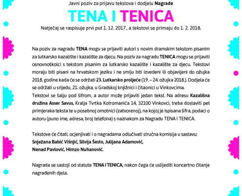 Poziv za prijavu tekstova i dodjelu nagrade ‘TENA I TENICA’